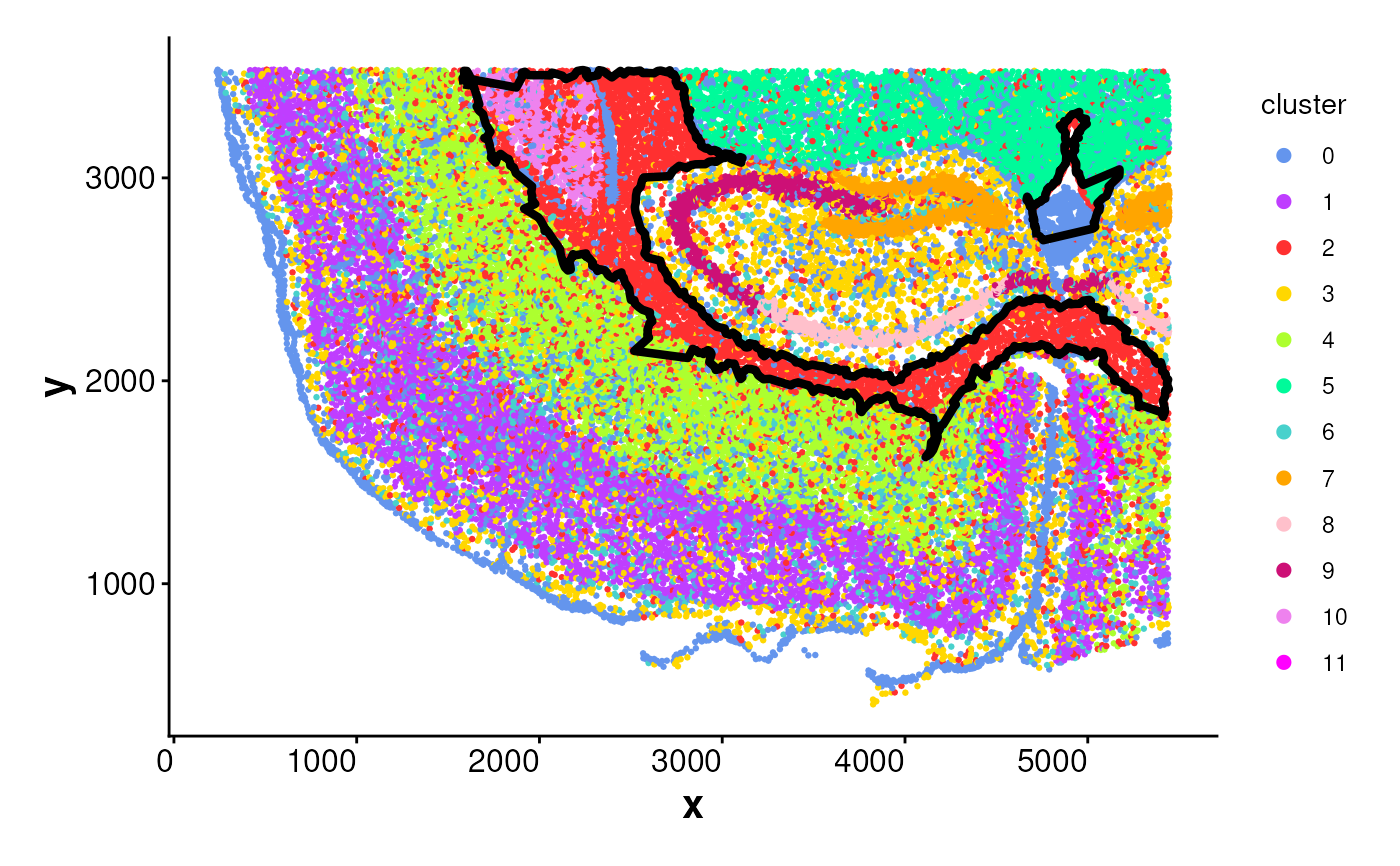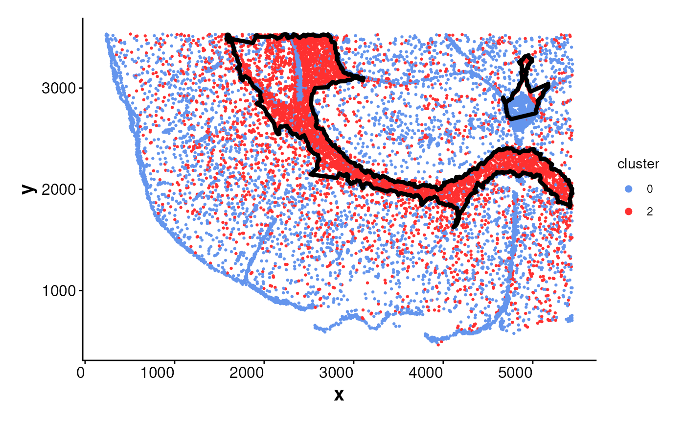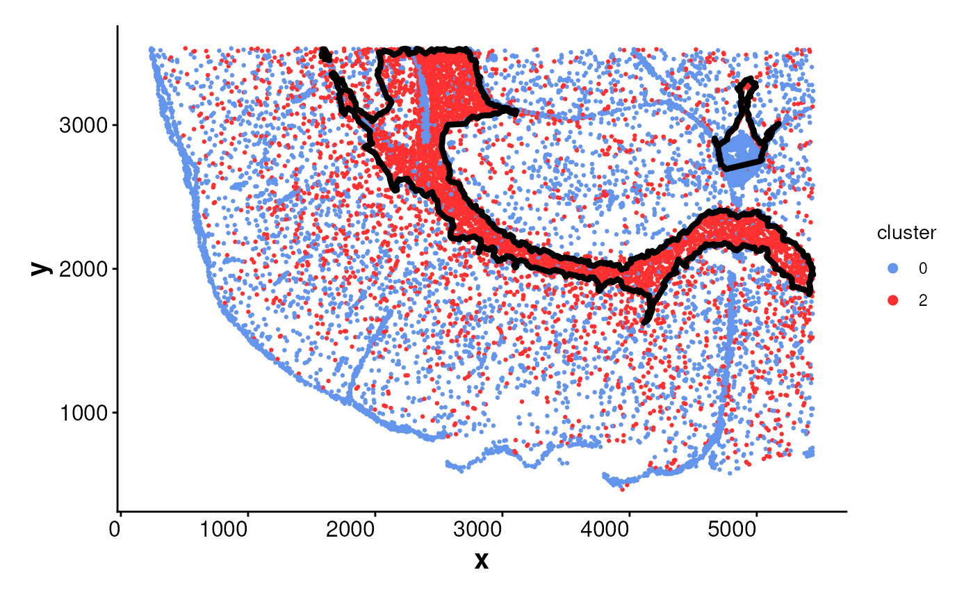 plotBoundary(data = spe, one_cluster = 2)