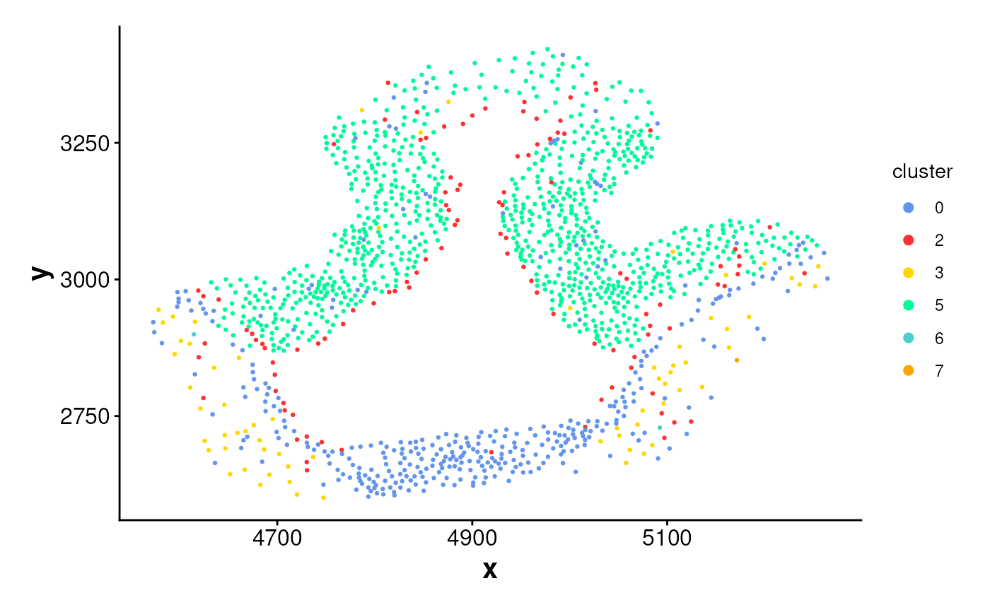 sfobject of cells returned bygetCellsInside(). Must containclusterandregion_idcolumns.- point_size
