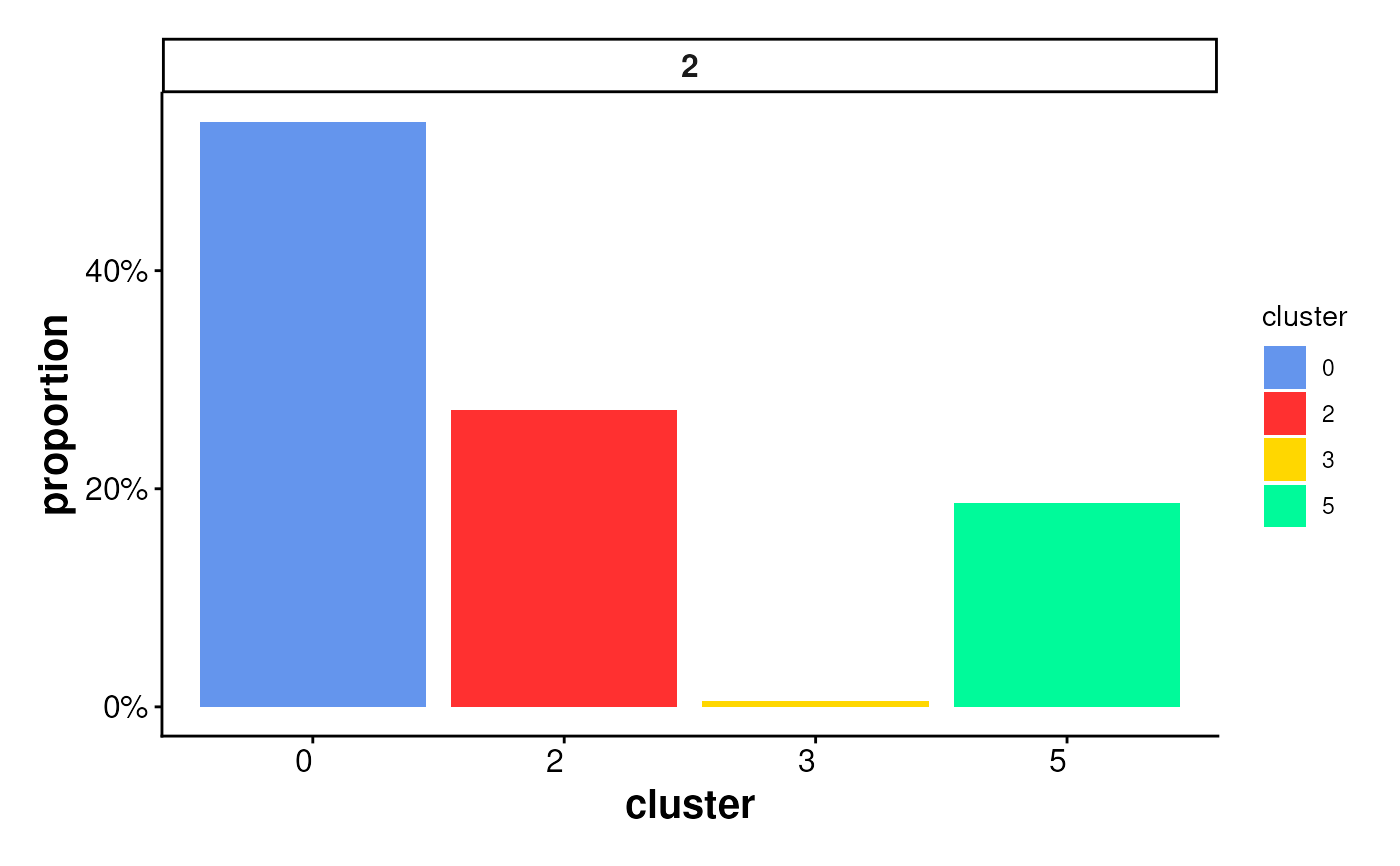 either as raw counts or proportions per cluster.