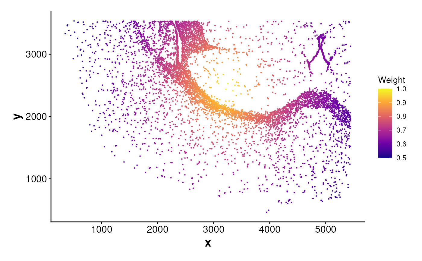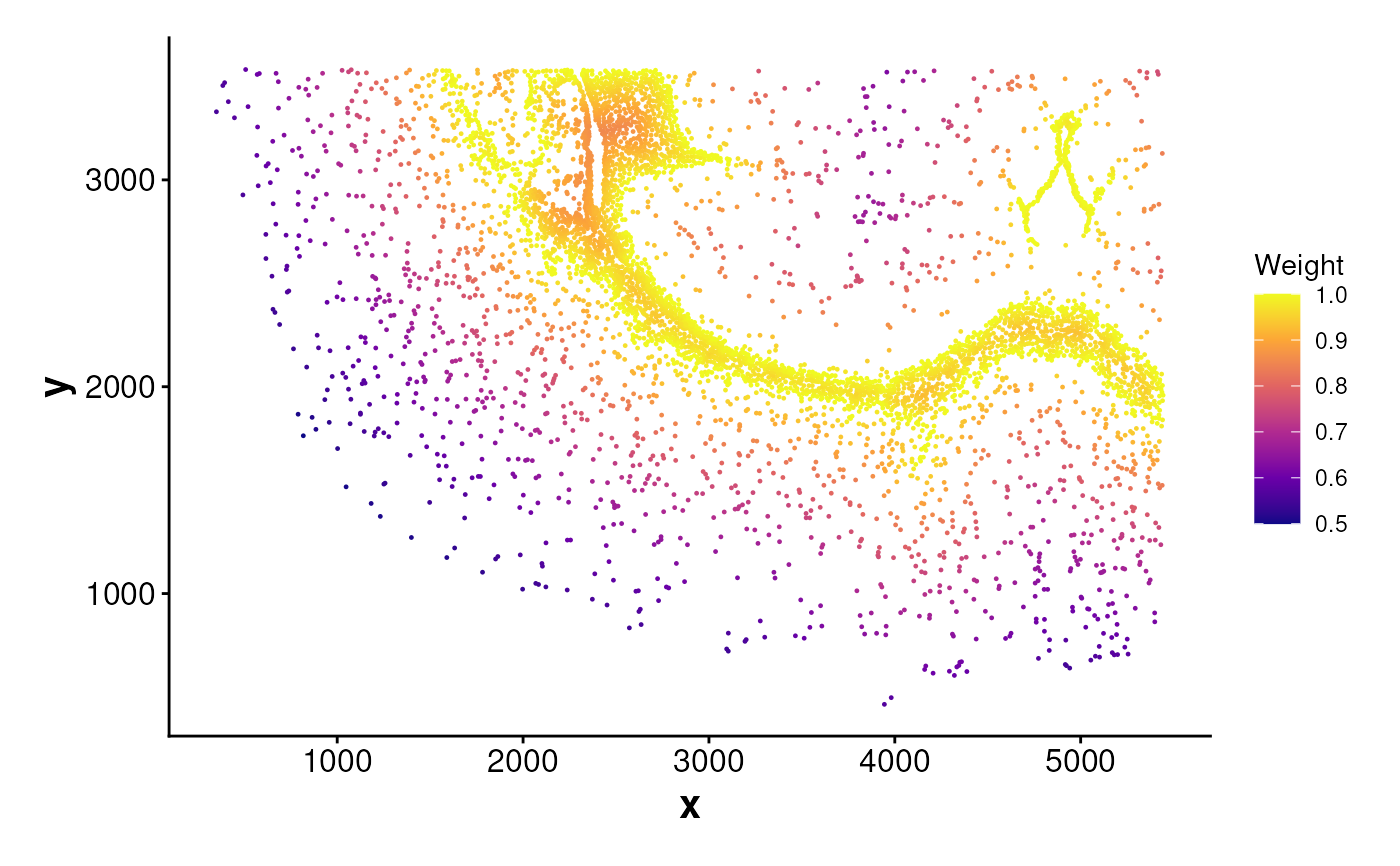 weights_cen <- computeCentroidWeights(data = coords, cell_ids = cells_c2)